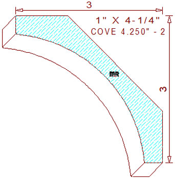 The spring angles are fixed at forty-five degrees, these specific back bevels set the installed height and projection at an identical dimension of 3" tall and wide. Review our commentary about axial constant positioning for crown bevels. The article will help you dial this profile in axially on the first try when milling this detail, provided the machine is axially calibrated.> Two high points in the detail were deliberately positioned on the same plane; our specialized design features will assure excellent hold-down conditions while milling, providing the moulder pressure shoe is parallel to the machine bed plates.