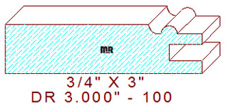 This 3" - 100 cabinet door stile/rail measures 3.000" wide by .750" thickness, permitting the detail to be machined out of four quarter lumber. The creative profile is comprised of a 2-3/16" wide horizontal fillet, connected to a 5/32" radius quarter round cove that transitions into a 1/4" wide half-circle, attached to a 3/8" wide sunk fillet located above the dado for the panel, this will leave a thickness dimension of .605" on the thin side of the design. We offer the matching drawer front for this pattern; you may want to review and consider drawer front 1.750" - 53.